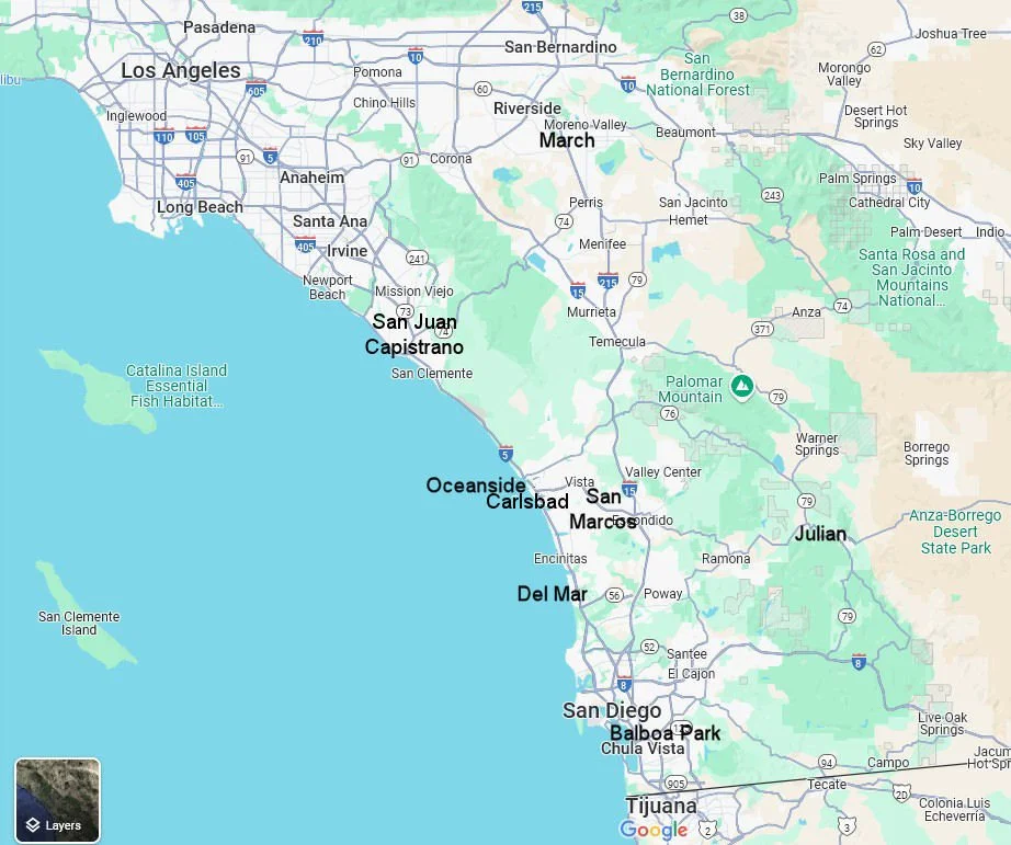 A couple of Spanish padres aided by half a dozen soldiers founded the Mission: their travel was via boat south between San Diego and Juan Capistrano or on horseback.