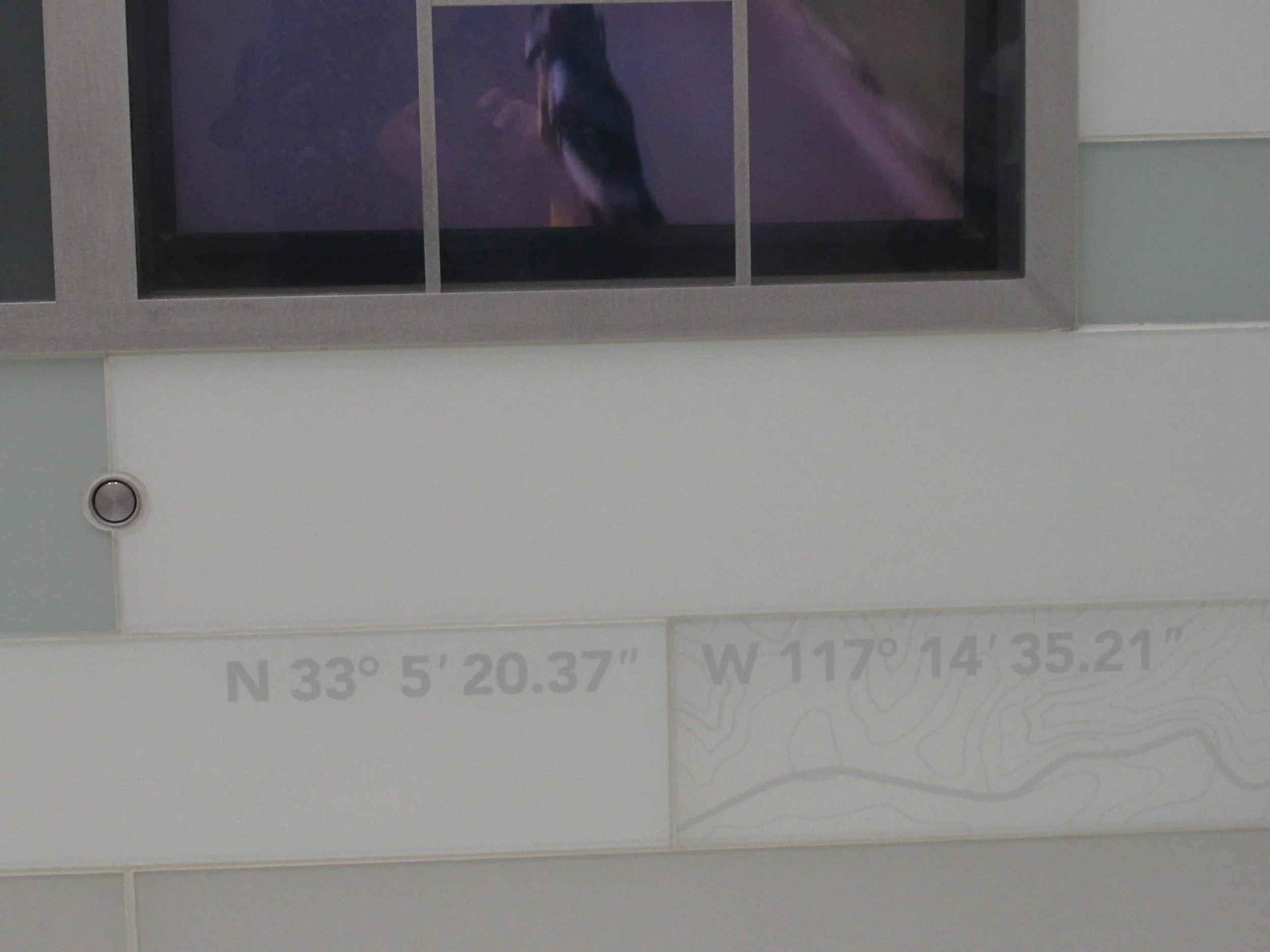 (Spotted in the concrete surface at the entrance to a Departures restroom)